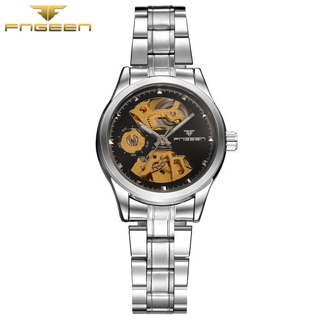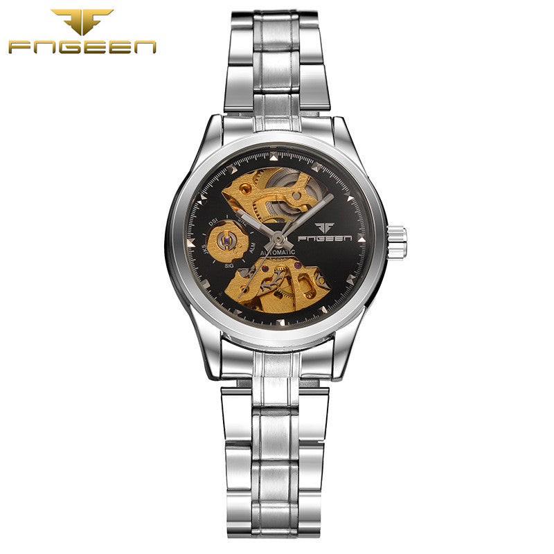 FNGEEN 8818 Ladies Fashion Automatic wristwatch woman Hollow Mechanical business Watch top quality women famous clock vintage