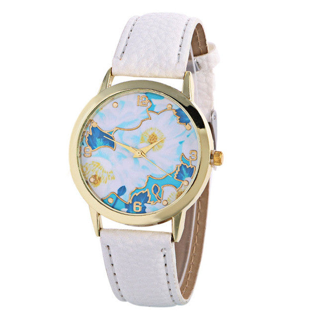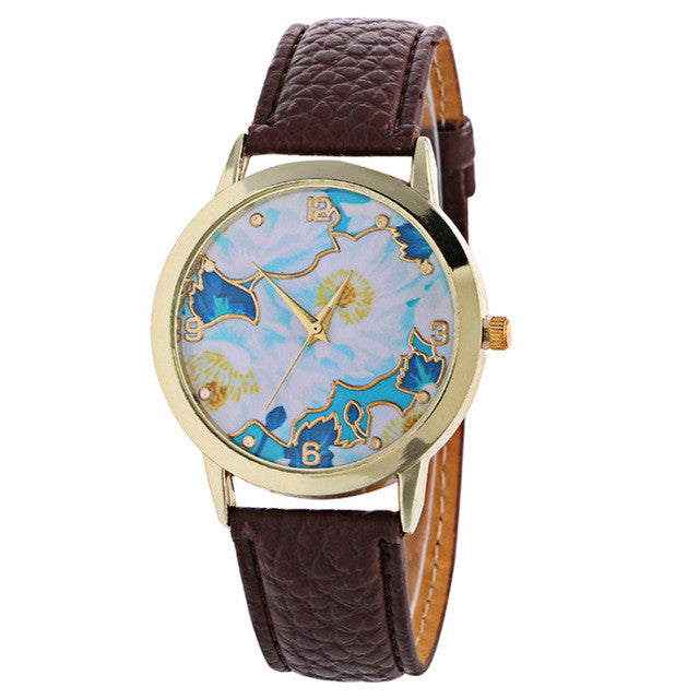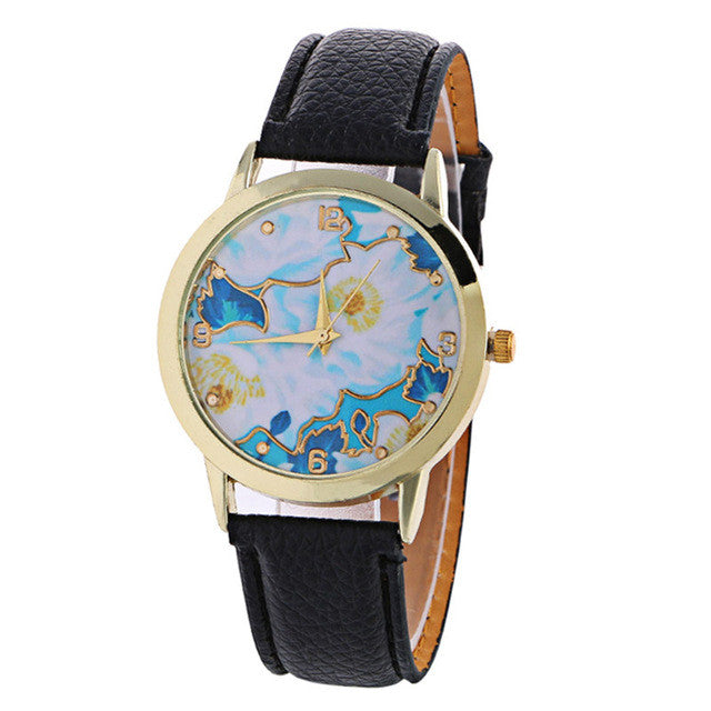 Ladies Fashion Girl Quartz Watch Clock Women Leather Brand Casual Dress Women's Flower Wristwatch Cool Watches Unique Watches