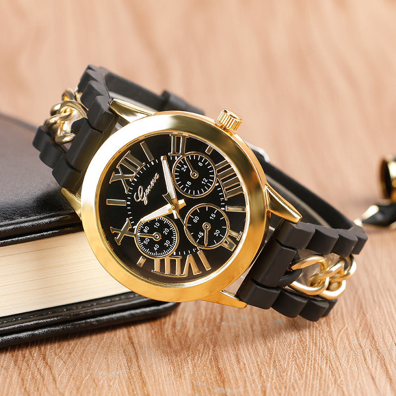 Unique Cool Steampunk Women Watches Silicone Bracelet Quartz Watch Ladies Roman Numbers Gold Case Wrist Watch Girl Relojes